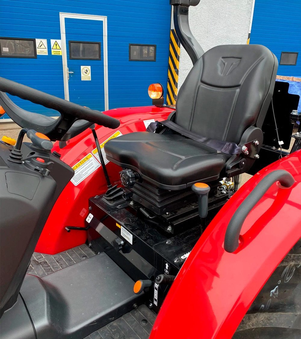 Komfort und Sicherheit gehören zur Standardausstattung: verstellbares Lenkrad, gefederter Sitz, Joystick für Frontlader, sowie helle LED-Arbeitsleuchten vorne und hinten. Damit eignet sich der Traktor ideal für Landwirtschaft, Gartenanlagen, kommunale Einsätze, Pferdebetriebe, Golfplätze oder mittelgroße Betriebe.