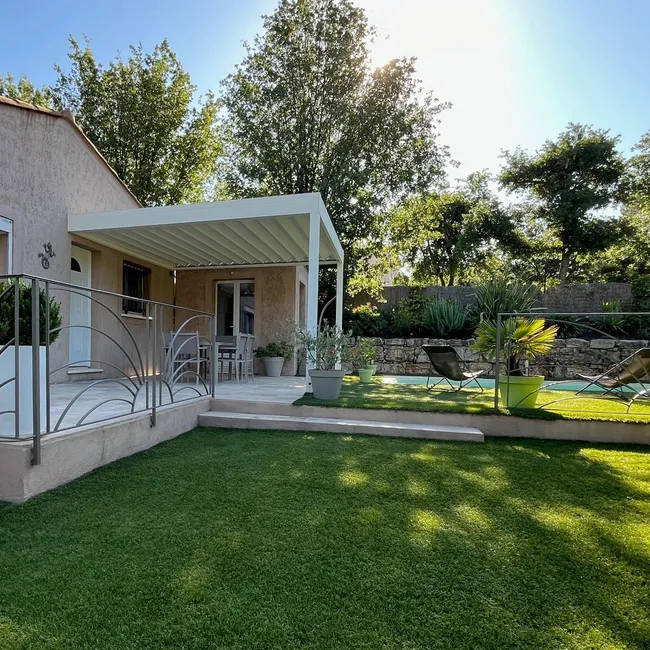 Die bioklimatische Pergola Triomphe 3 × 4 m ermöglicht entspannte Momente in Ihrem Garten, ohne sich um das Wetter sorgen zu müssen. Im Gegensatz zu anderen Pergolen passt sie sich unterschiedlichen Witterungsbedingungen an. Im Winter schützt sie vor Regen oder lässt Sie die Sonne genießen, während sie im Sommer angenehmen Schatten und wohltuende Frische bietet. Die Pergola wird fest im Boden verankert, wodurch sie eine dauerhafte Lösung darstellt. Ein Abbau im Herbst ist nicht erforderlich – Sie können sie das ganze Jahr über nutzen.