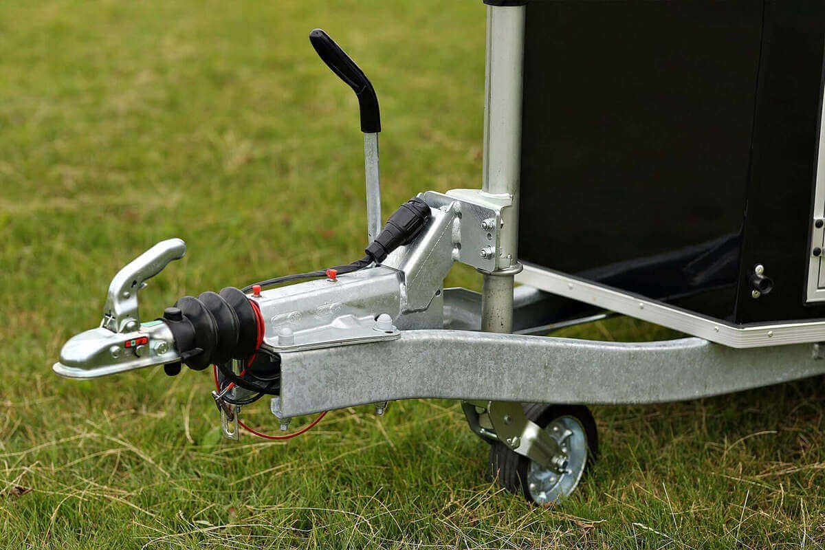 Da es sich um einen Anhänger mit hoher Tragfähigkeit handelt, verfügt er serienmäßig über eine Auflaufbremse auf einer besonders verstärkten, feuerverzinkten Zugdeichsel mit Kupplungskopf für 1600 kg. So wird eine sichere Fahrt auch auf kurvigen und bergigen Strecken gewährleistet. Eine Feststellbremse ermöglicht das sichere Abstellen des Anhängers im Stand.