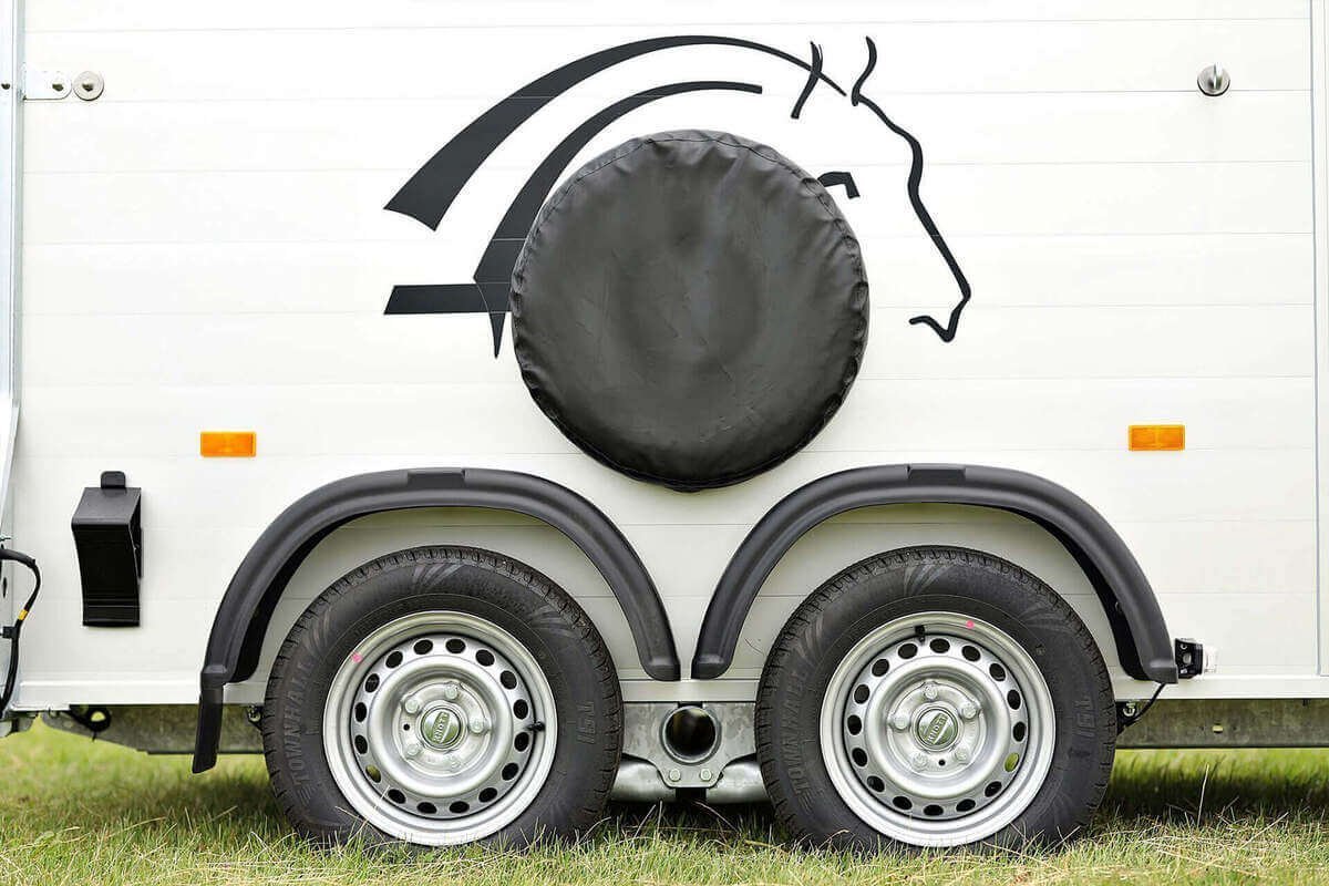 Der Anhänger ist mit zwei verstärkten KNOTT-Achsen à 900 kg ausgestattet, die ein ruhigeres Fahrverhalten ermöglichen, da das Gewicht gleichmäßig verteilt wird – statt direkt auf der Anhängerkupplung zu lasten. Der Anhänger ist für 1600 kg zugelassen.