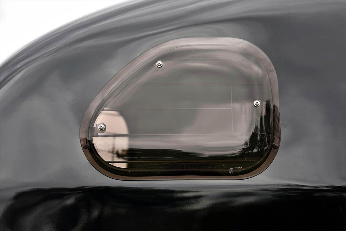 Das Dach und der Bug bestehen aus glasfaserverstärktem Kunststoff, während die Seitenwände – je nach gewählter Option – aus finnischem Holz oder Aluminium gefertigt sind. Für zusätzlichen Komfort und Schutz sind die Innenwände gepolstert.