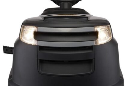Der Sitz mit Armlehnen, die elektromagnetische Messerkupplung und ein intuitives Bedienpanel sorgen dafür, dass alle Funktionen mühelos steuerbar sind. Die sieben Schnitthöhen (2,9 bis 9 cm) lassen sich leicht einstellen, und die LED-Scheinwerfer schalten sich bei schwächerem Licht automatisch ein – ideal für frühe Morgenstunden oder die Abenddämmerung. Auch durchdachte Details überzeugen, wie die manuelle Entleerung des Auffangbehälters oder der Füllstandsanzeiger, der signalisiert, wann entleert werden muss.